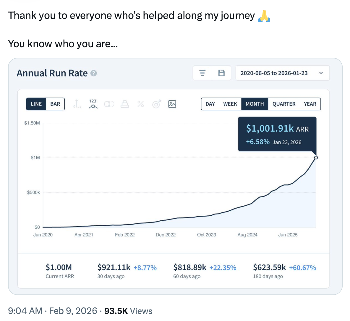 Congratulations to Elston for hitting $1m ARR with his TinyHost SaaS (affiliate).